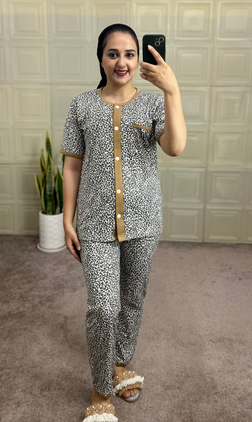 / ست شیردهی پلنگی آستین کوتاه / ست پلنگی دکمه دار آستین بلند